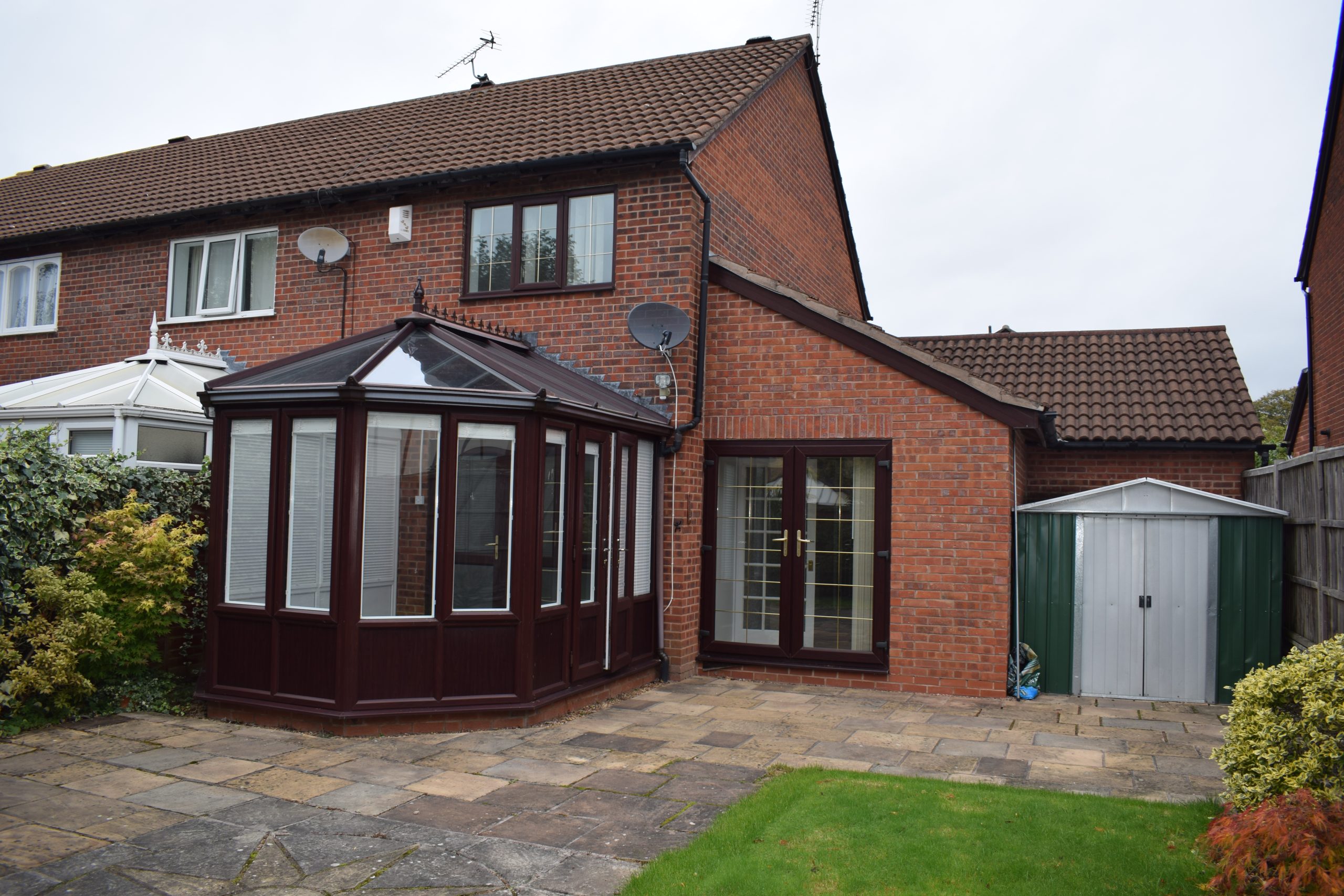 - Driveway and Enclosed Landscaped Garden with Lawn & Patio Area and Storage Shed