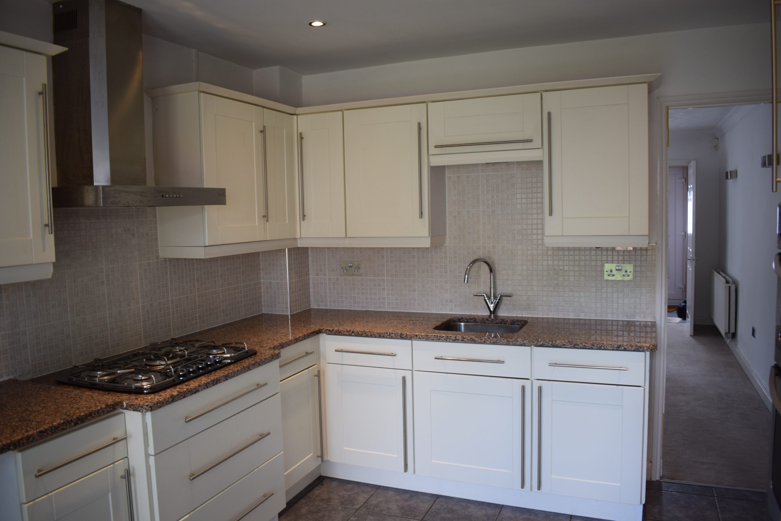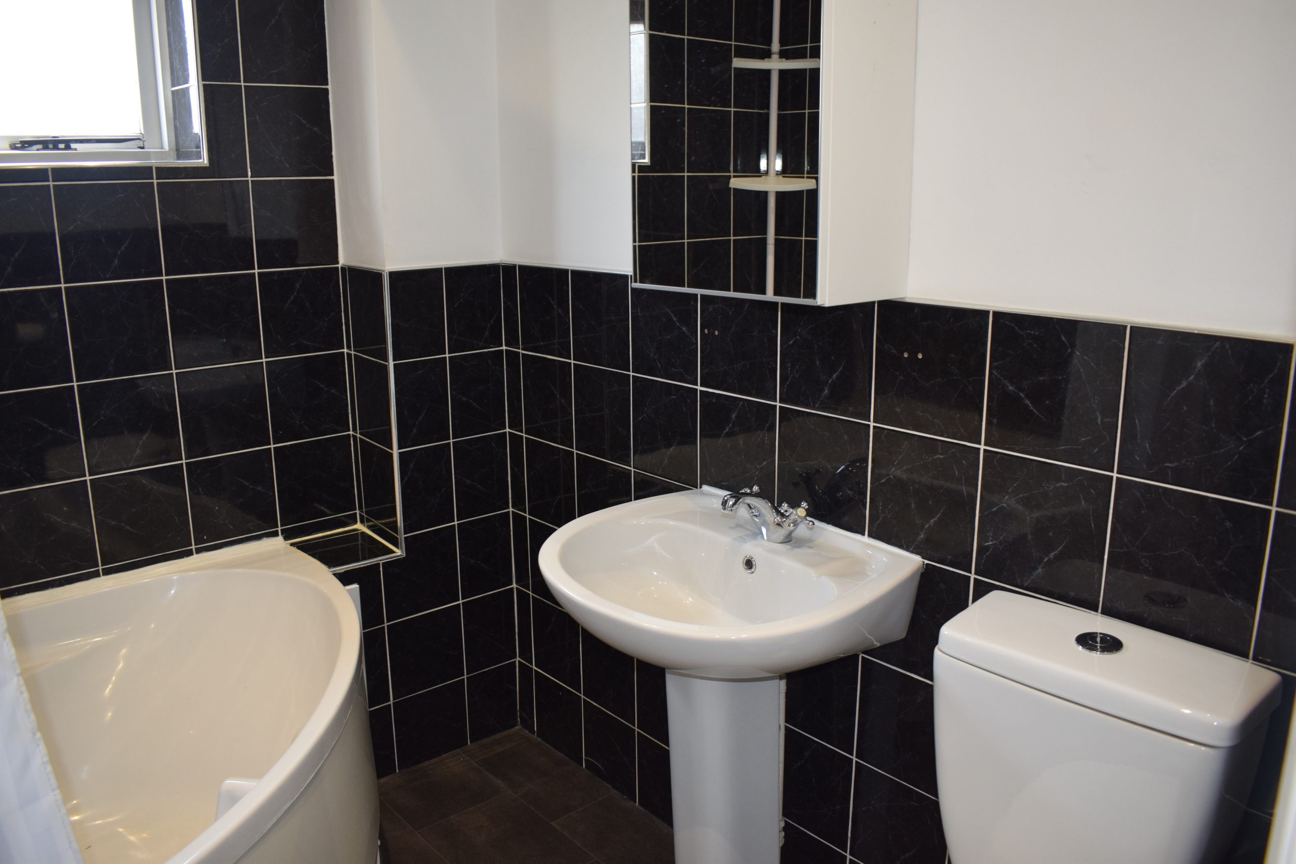 Upstairs, the property offers two well-proportioned double bedrooms and a modern family bathroom fitted with a white suite and shower over the bath.