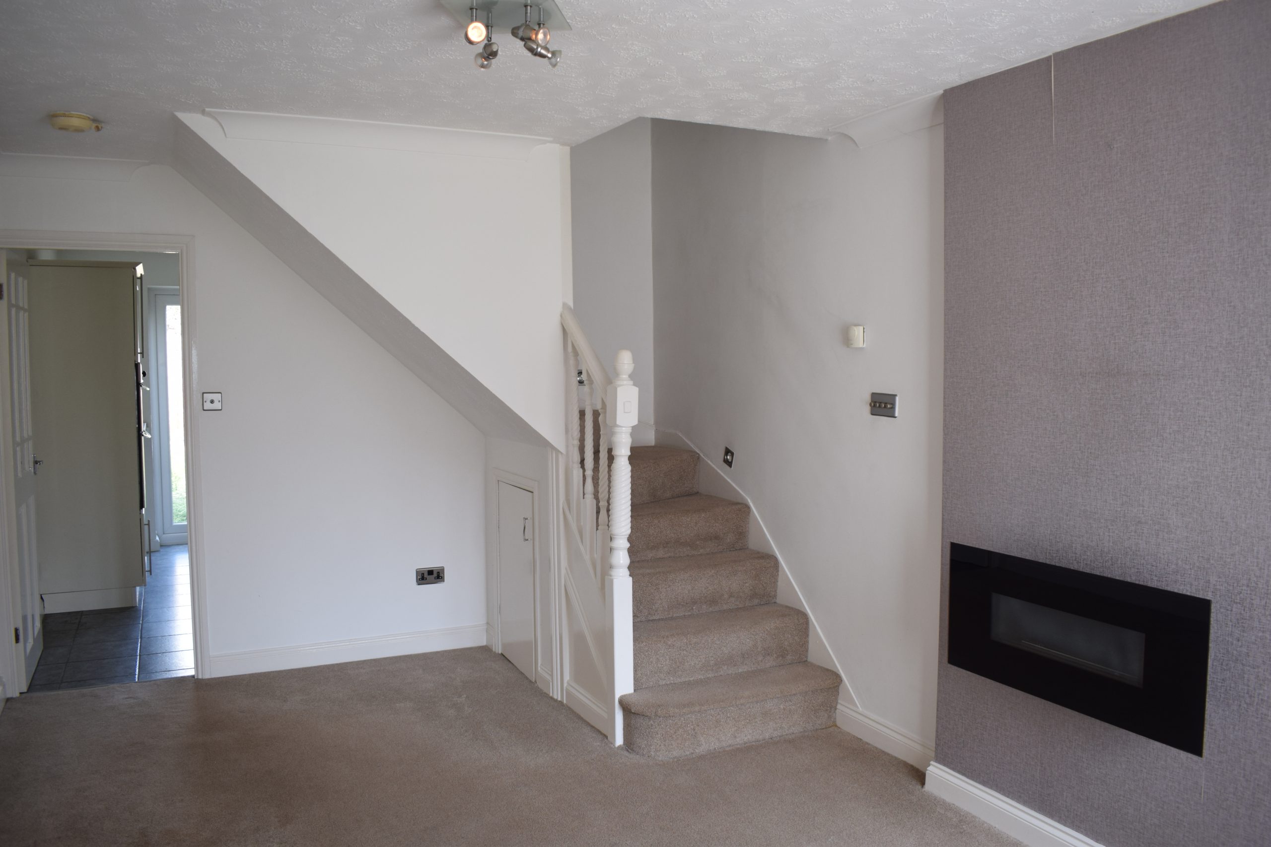 The ground floor briefly comprises a welcoming lounge featuring a modern fireplace, creating a cosy focal point to the room. To the rear of the property is a stylish fitted breakfast-kitchen, complete with built-in gas hob and electric oven, along with a breakfast bar providing a practical dining space. Patio doors lead directly onto the enclosed rear garden, allowing for plenty of natural light and a seamless connection to the outdoor space.